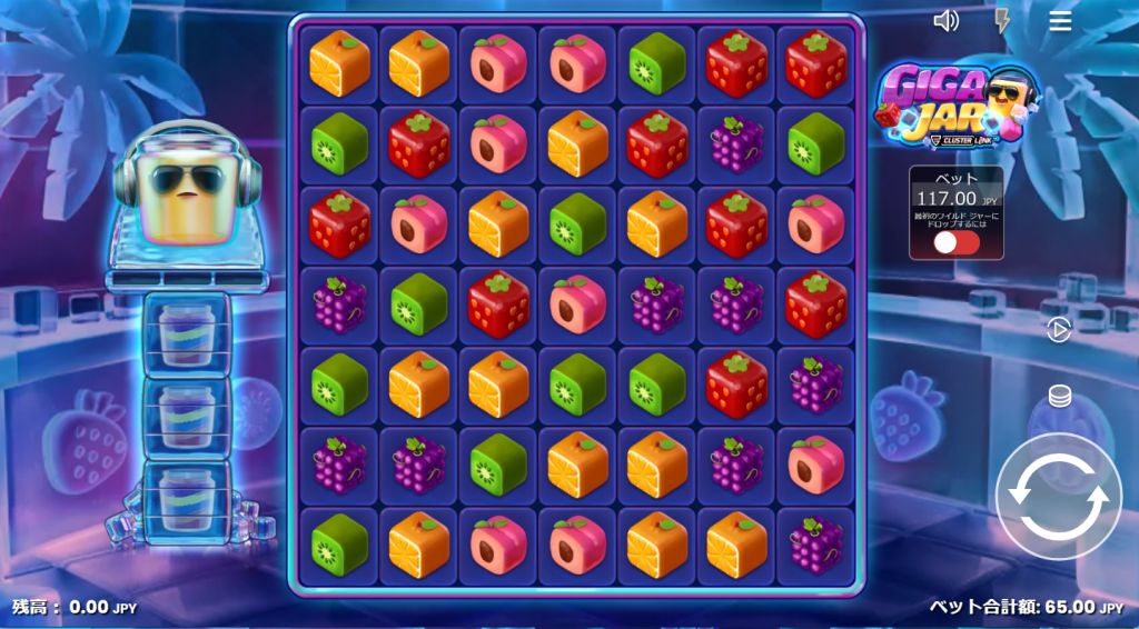 ギガ・ジャーはPush Gamingの人気スロット「Jammin’Jars」のシリーズ最新作です。当たり連鎖で巨大な瓶が発動すればマルチプライヤーが最大50倍まで上昇!最大1万倍配当を期待できます。BGMやビジュアルの中毒性があるので遊びすぎに要注意!