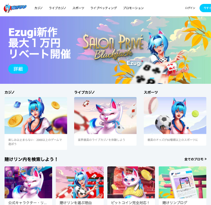 英国有名ブックメーカー10BetJapanがリニューアルして誕生した賭けっ子リンリン。名前は奇抜ですが、中身は本格的なオンラインカジノ&スポーツベットサイトで、Android版・iOS版アプリをリリースしています。