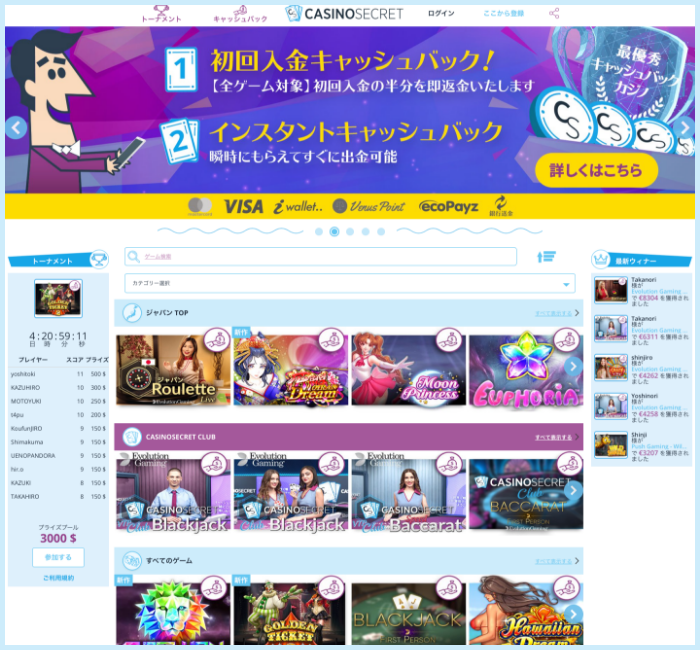 キャッシュバックが豊富「カジノシークレット」
