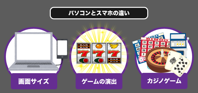 - オンラインカジノのスマホ・パソコンの違い(画面サイズ・演出・ゲーム)