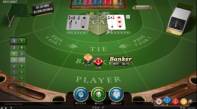 カジノの王様と称されるバカラで遊んでみたい方は、テーブルゲームのバカラから始めてみてはいかがでしょうか。バカラはプレイヤー・バンカーどちらの合計点数が「9」に近いか予想するだけの簡単カードゲームです。